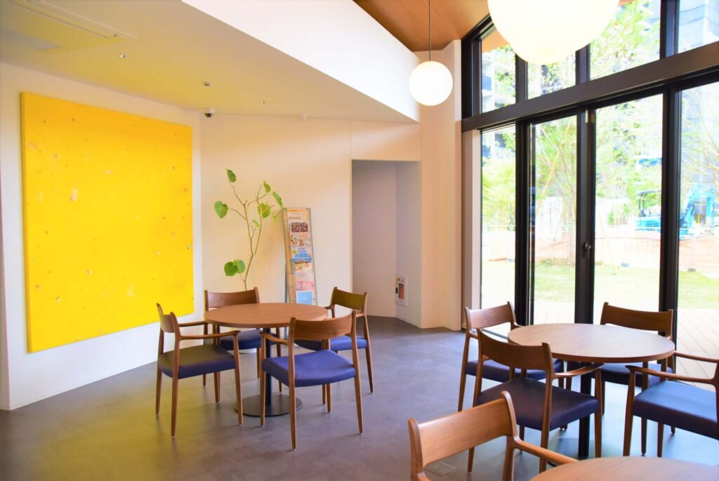 シェアテラスだけでなく、各棟のラウンジもとても素敵です。小さなお子様と本棚の本を読んだり、ママ友とのおしゃべりを楽しんだり。緑を眺めながら、洗練された空間でオンライン会議やお仕事も。(Wi-Fi無料)